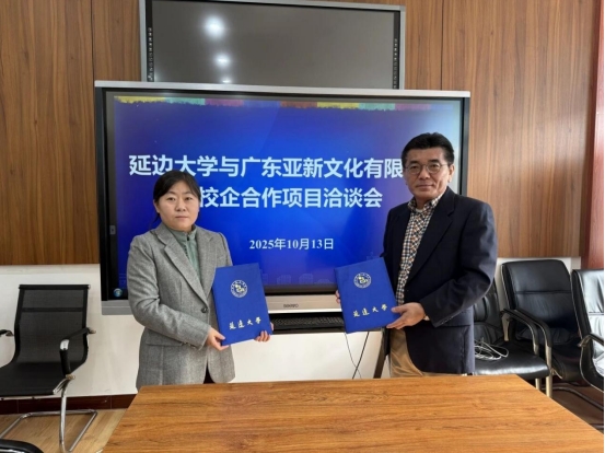 10月13日上午,延邊大學外國語學院與廣東亞新文化有限公司在融合樓404會議室舉行了校企合作洽談會。廣東亞新文化有限公司法人樸文哲、項目總監(jiān)崔蓉花,延邊大學教育培訓管理中心主任崔振宇、外國語學院黨委書記徐炳煊、外國語學院院長樸銀姬、外國語學院副院長劉一參加了會議,會議由外國語學院院長樸銀姬主持。